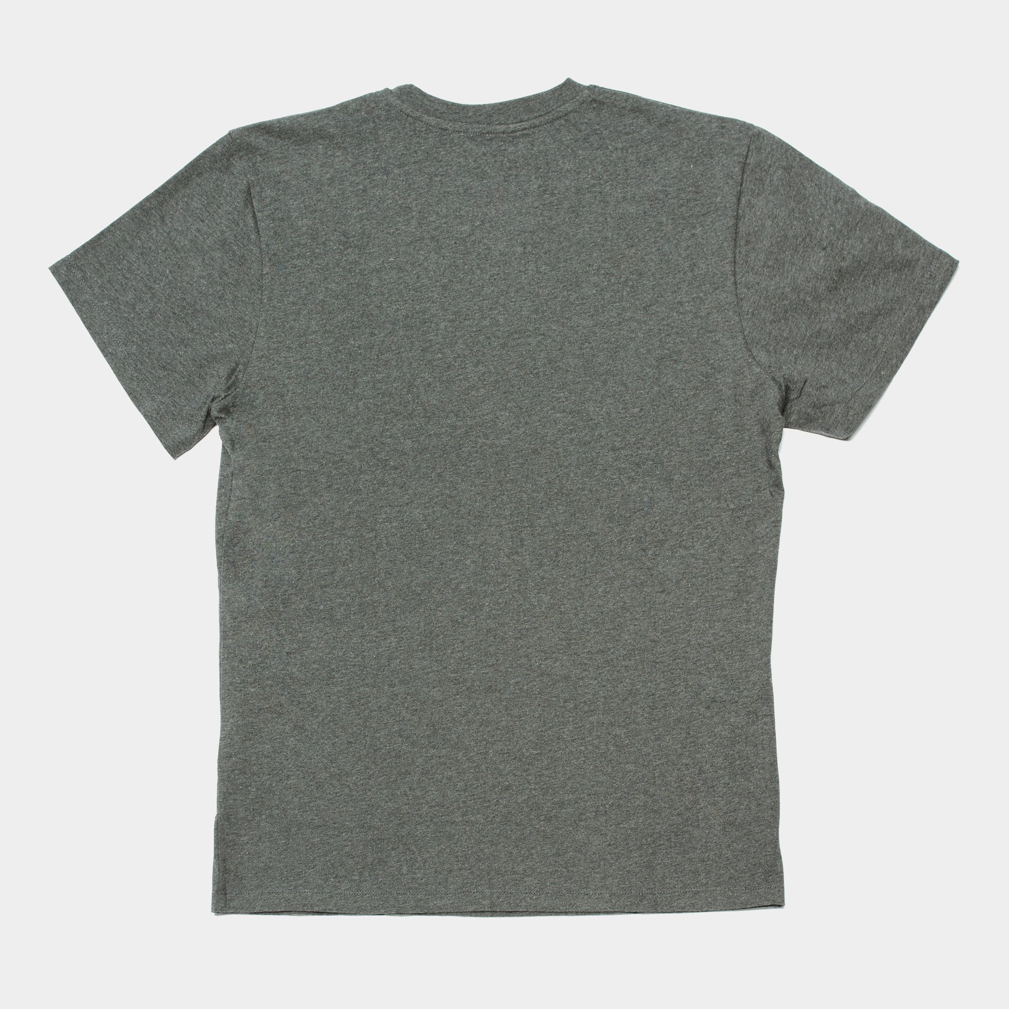 Asphalt colored t-shirt with lighter grey chest pocket, holding your favorite toys.